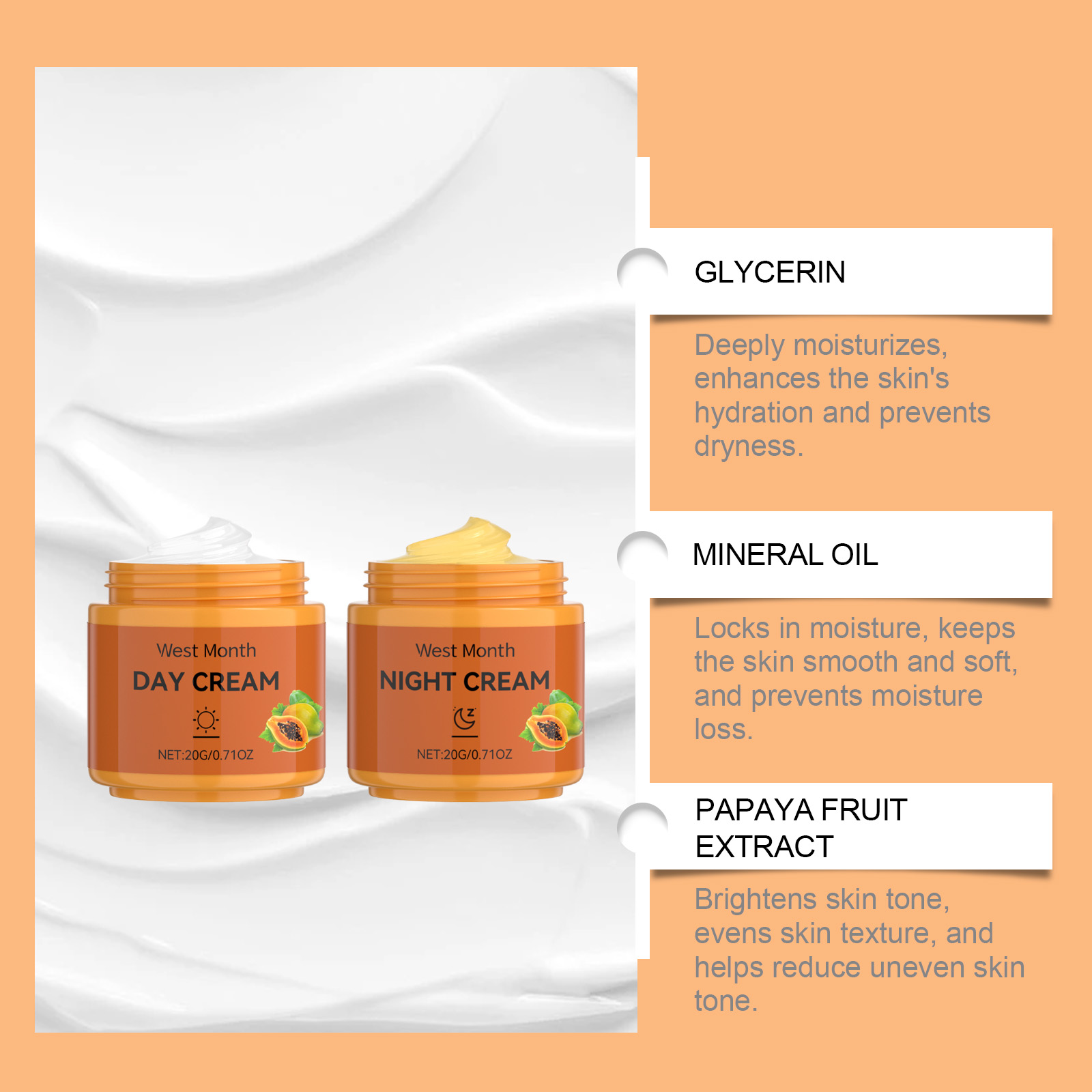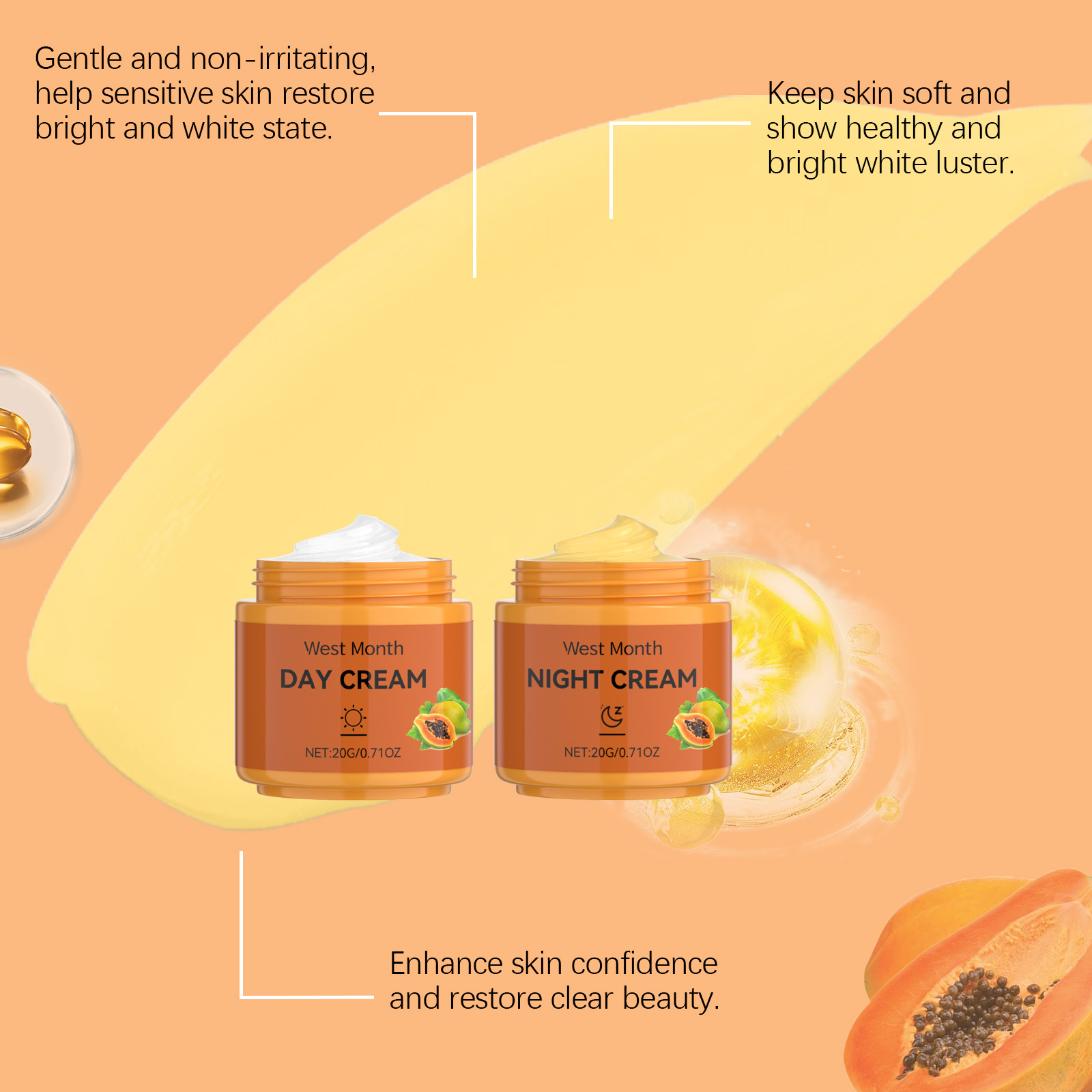 West&Month Papaya Facial Cream, Lightens And Improves Facial Hydration, Moisturizes, Brightens And Softens Skin